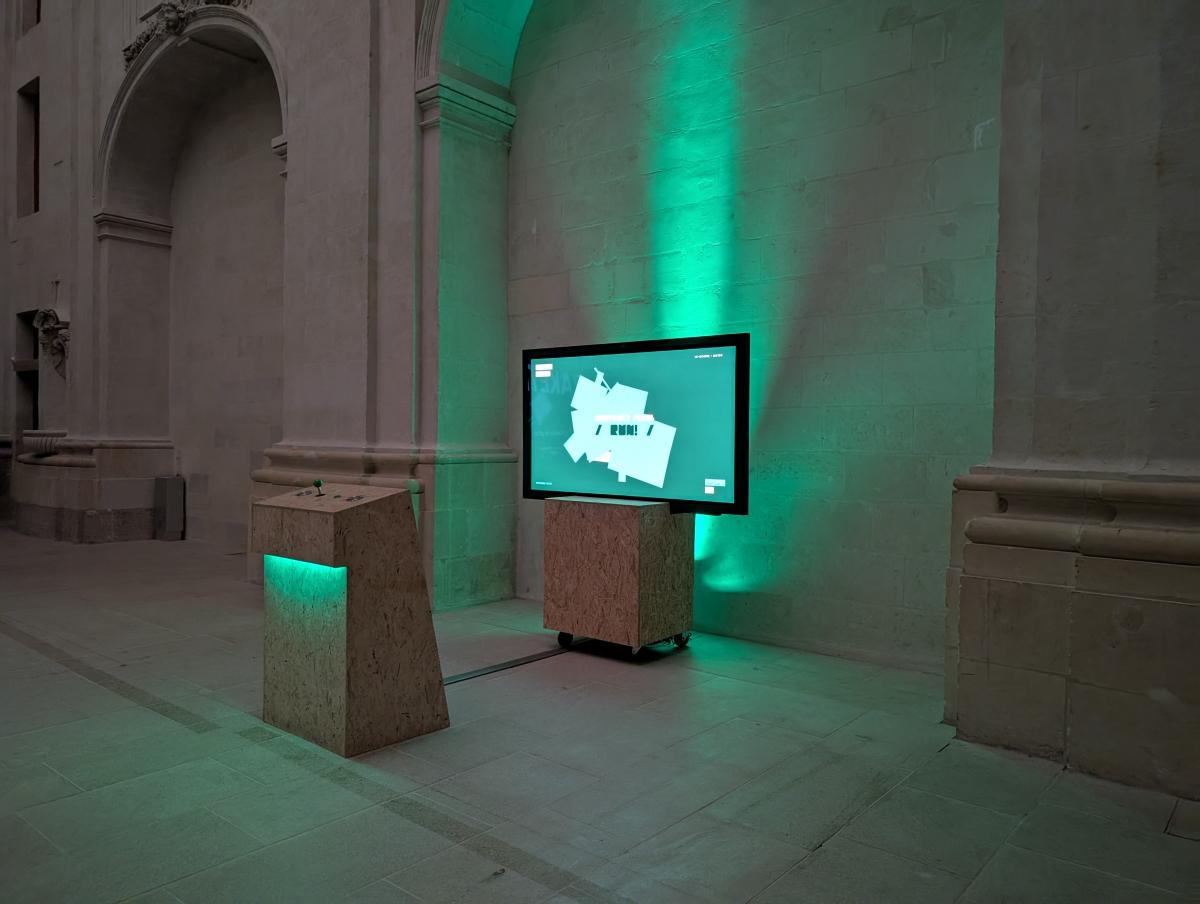 Régulièrement présenté sur une borne d’arcade dédiée intégrant un joystick et un bouton, éventuellement vidéo-projeté, Abstract Pixel Run! s’installe aussi sur Windows et Mac OS.